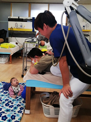 - ハーフパンツ等をご用意しておりますが、なるべくゆったりとした服装でご来院ください。